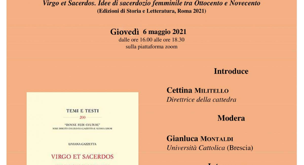 Webinar Cattedra ‘Donna e cristianesimo’ e SIRT. Presentazione volume di Liviana Gazzetta, Virgo et sacerdos. Idee di sacerdozio femminile tra Ottocento e Novecento.